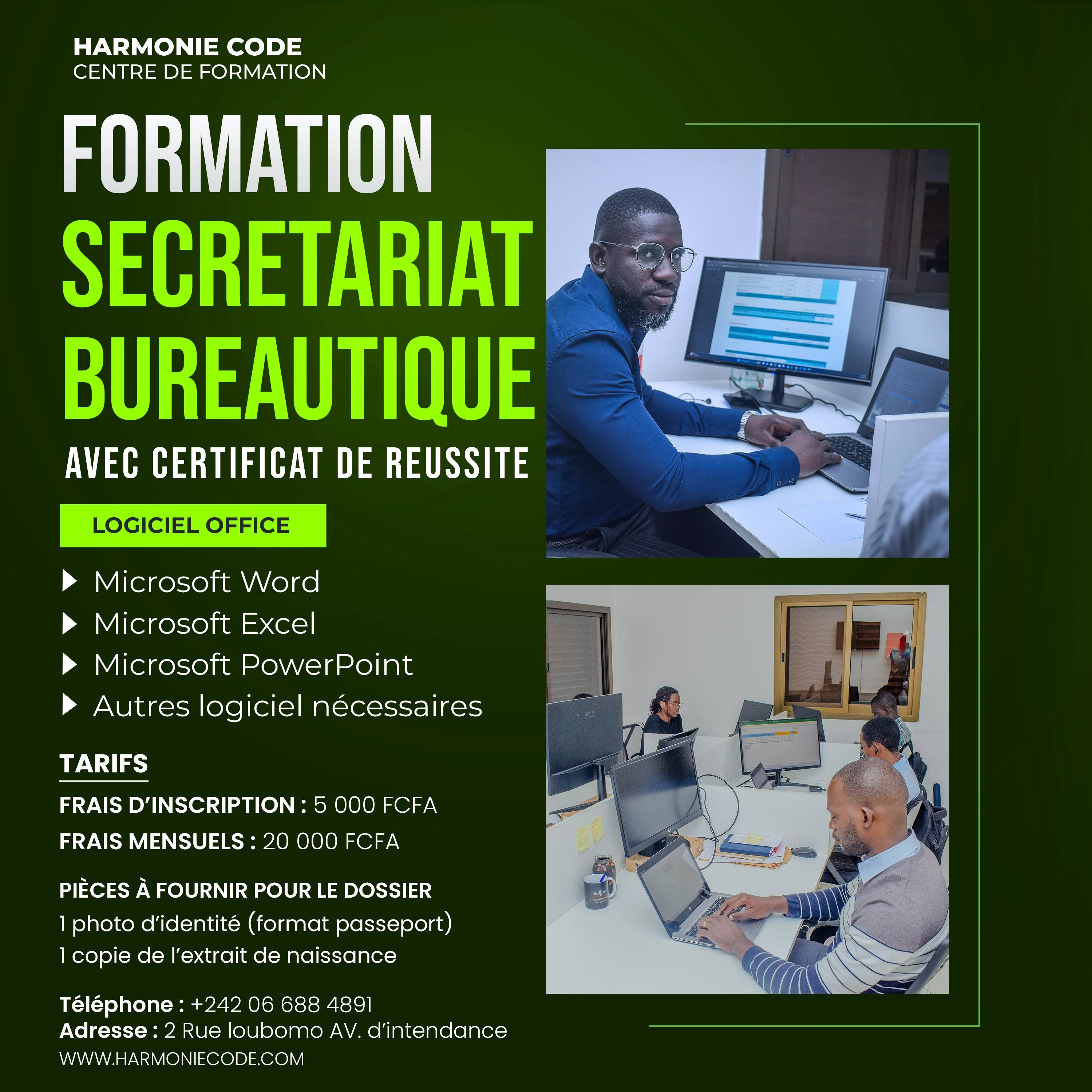 Le Centre de Formation HARMONIE CODE ouvre ses inscriptions pour une formation complète en Secrétariat Bureautique, destinée à toutes les personnes souhaitant acquérir des compétences solides en bureautique et en gestion administrative. Objectif de la formation Cette formation vise à donner aux participants les outils nécessaires pour devenir efficaces et autonomes dans la gestion des tâches de secrétariat et d’administration. Elle s’adresse aussi bien aux débutants qu’à ceux qui souhaitent renforcer leurs compétences.